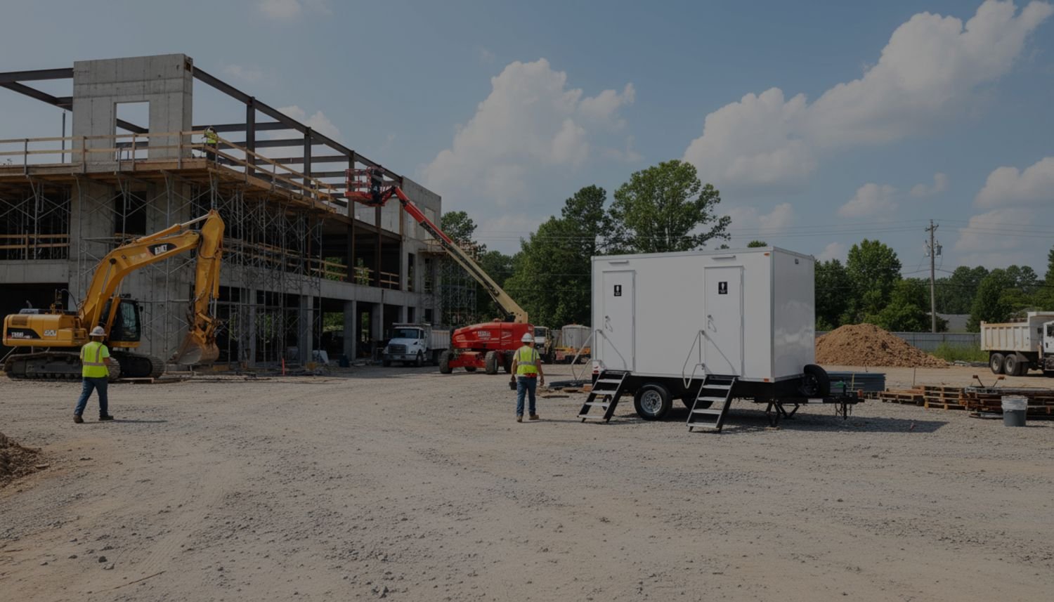 Our climate-controlled restroom trailers provide dependable comfort for construction sites and active job sites throughout Birmingham and Central Alabama—delivering clean facilities, reliable service, and professional support from delivery and setup through final pickup.